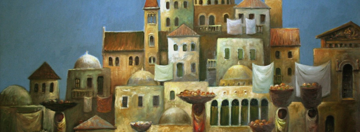 ” My memories, both beautiful and painful, are the source for my creative inspiration. The recurring artistic elements and motifs of women, homes and trees represent the longing for a Palestinian homeland. Through my art I want to give my people the dream and hope for a brighter future.”